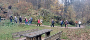 Nach einer kleinen Sekt- und Brezelfrühstückspause wanderten wir durch eine traumhaft schöne Herbstwaldlandschaft zur Wimsener Höhle.